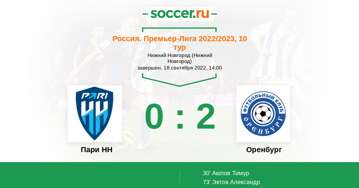 Я думаю что в этом противостоянии более чем явным фаворитом на победу является команда хозяев поля Пари НН . Команда гостей Оренбург не одержала ни одной победы в гостевых матчах и даже не взяла ни одного очка . Когда как команда хозяев поля начинает набирать очки. И наврядли в этом матче команда гостей сможет взять хоть какие-то очки. Победа хозяев поля.