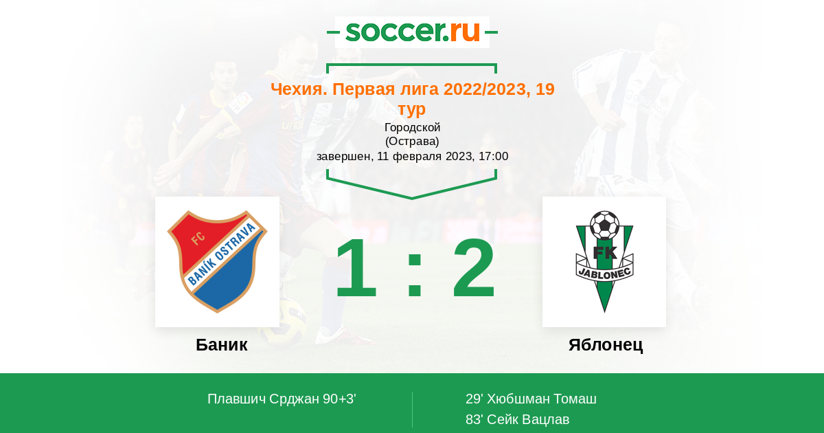 Гол90+3' (1:2) Плавшич Срджан (8) (Ярон Петр (14))