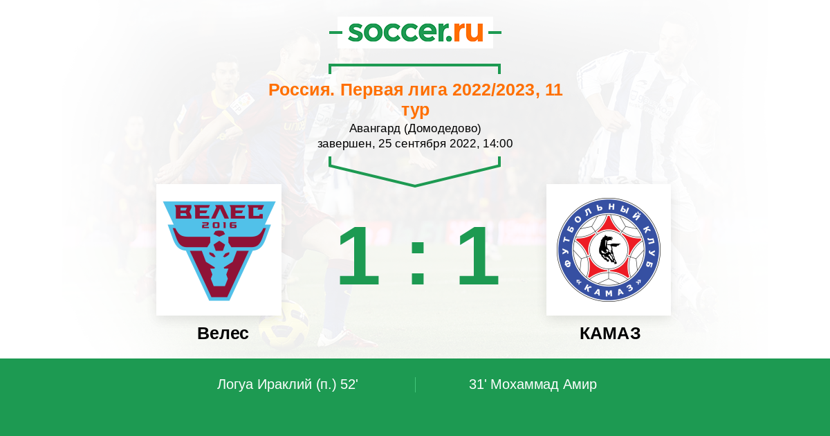 Велес внизу, КАМАЗ наверху. Вроде бы всё ясно, однако статистика в матчах между этими командами говорит об обратном. Верю, что футболисты КАМАЗа смогут собраться и развернуть статистику в свою пользу, победа за ними.