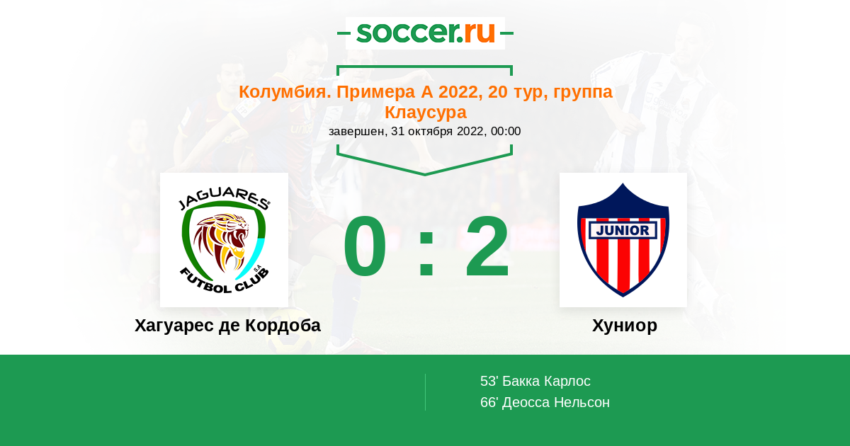 66' (0:2) Деосса Нельсон (16) (Бакка Карлос (70))