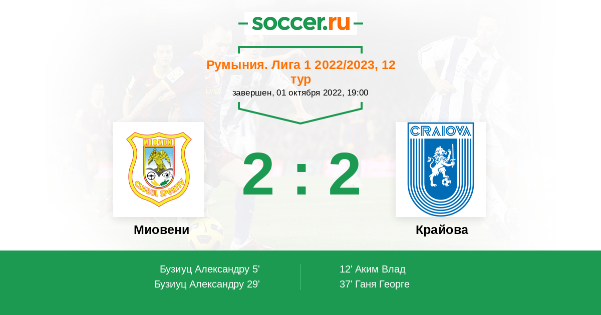 12' (1:1) Аким Влад (6) (Энаке Габриэль (44))