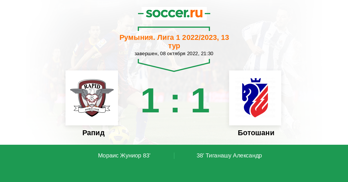 83' (1:1) Мораис Жуниор (13)