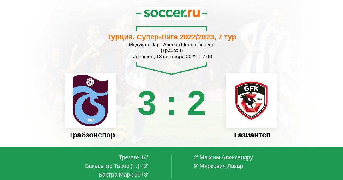 9' (0:2) Маркович Лазар (50) (Сойалп Фуркан (5))