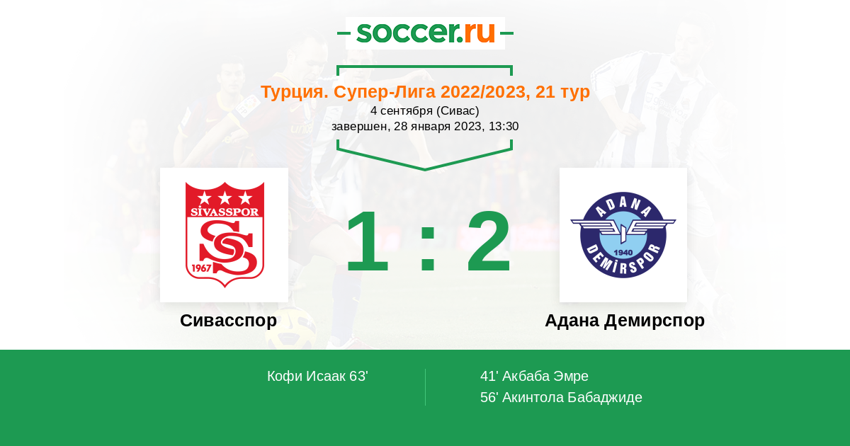 41' (0:1) Акбаба Эмре (20)
