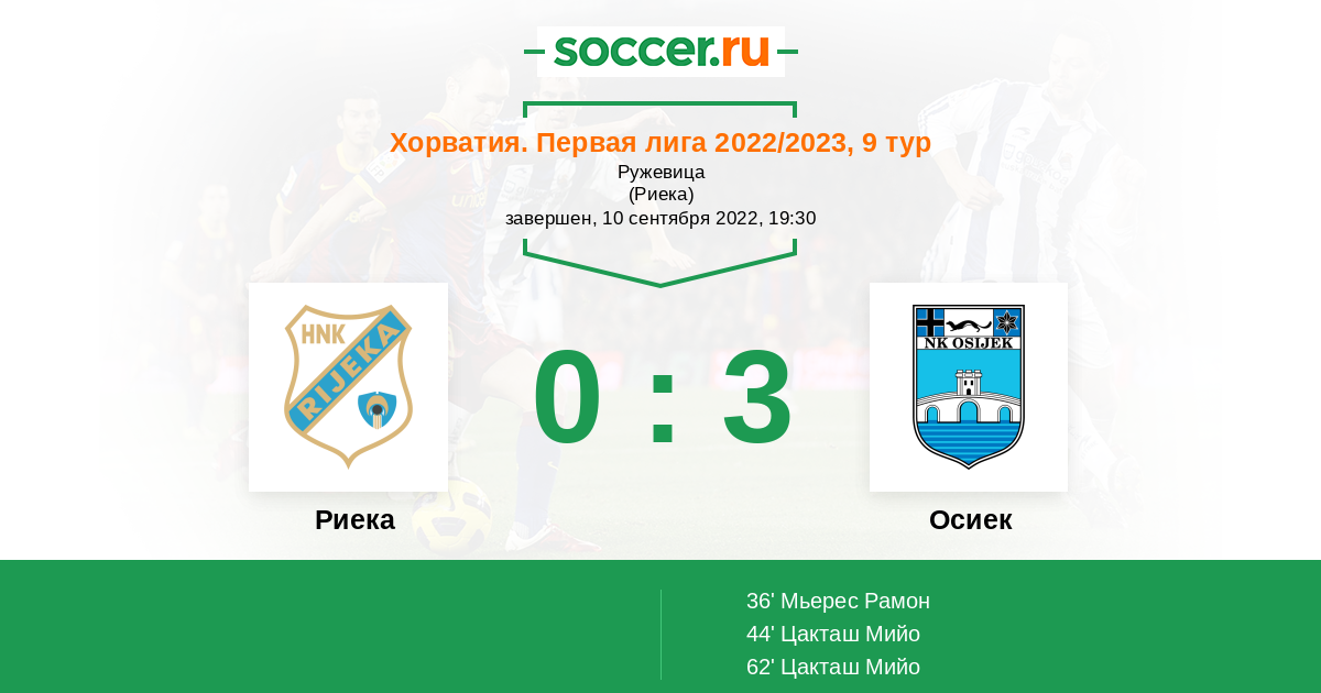 44' (0:2) Цакташ Мийо (11) (Гржан Шиме (17))