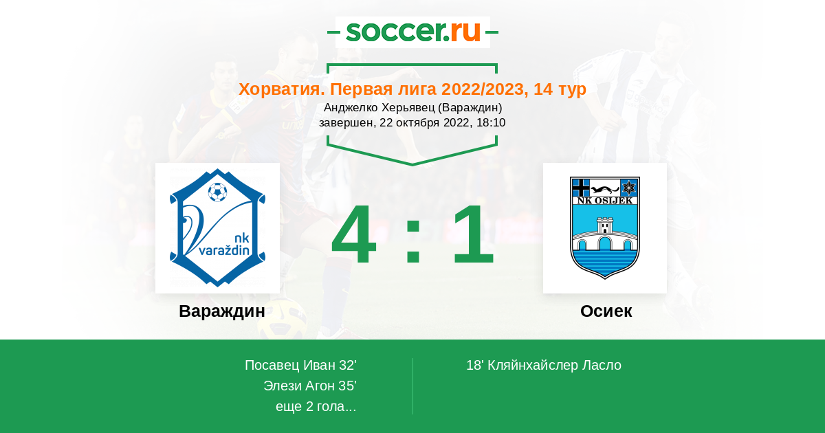 35' (2:1) Элези Агон (22) (Посавец Иван (10))