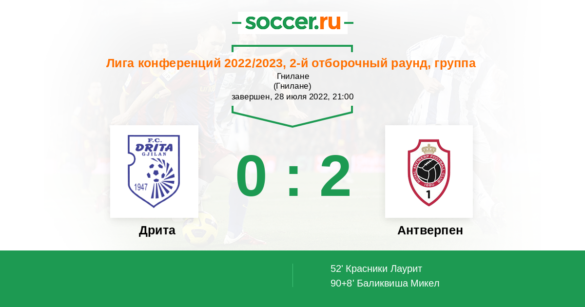 52' (0:1) Красники Лаурит (50)