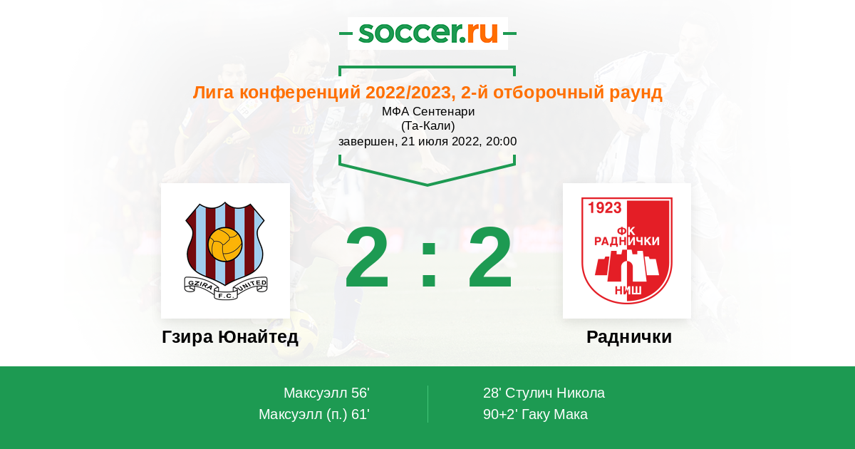 Гол90+2' (2:2) Гаку Мака (76)