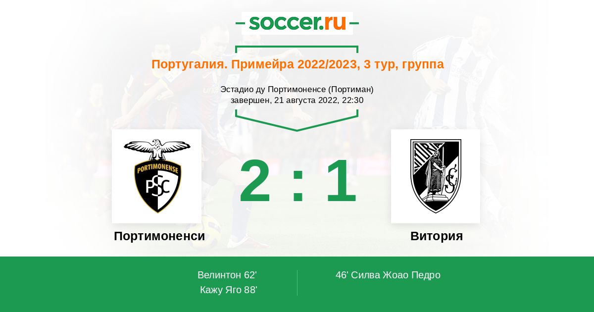 46' (0:1) Жота Силва (11) (Алмейда Андре (70))
