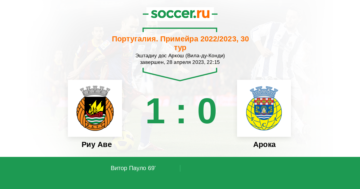 69' (1:0) Витор Пауло (93) (Эрнани (27))