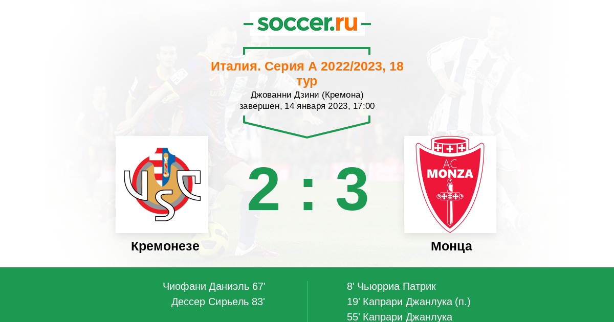 Стадион Джованни Дзини (Кремона), зрителей: 11519