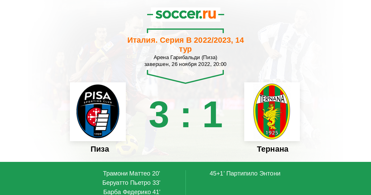 33' (2:0) Беруатто Пьетро (20) (Трамони Маттео (27))