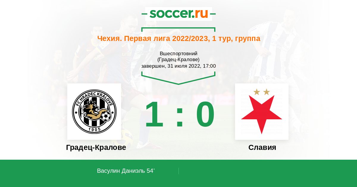 54' (1:0) Васулин Даниэль (15) (Кубала Филип (9))