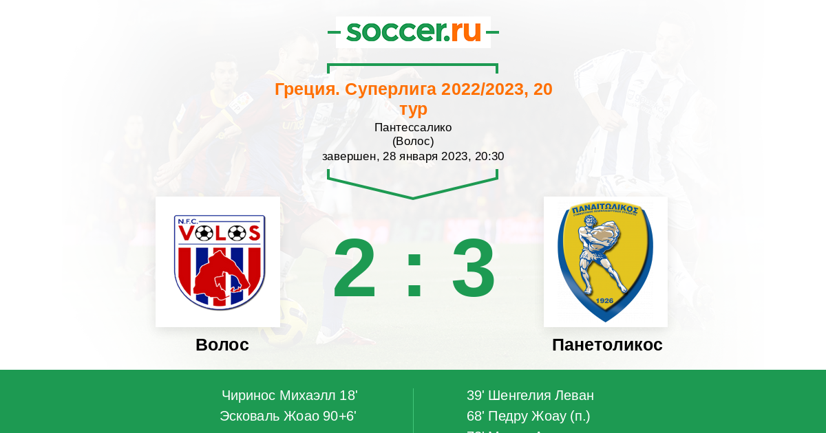 73' (1:3) Малис Александрос (47) (Шенгелия Леван (27))