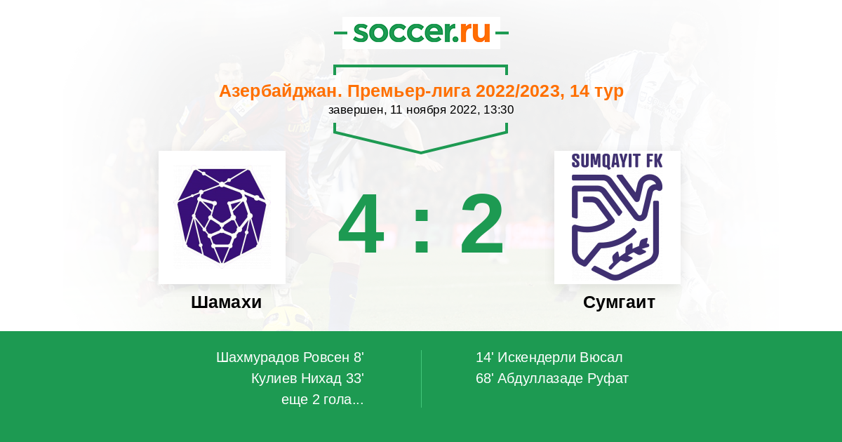8' (1:0) Шахмурадов Ровсен (23)