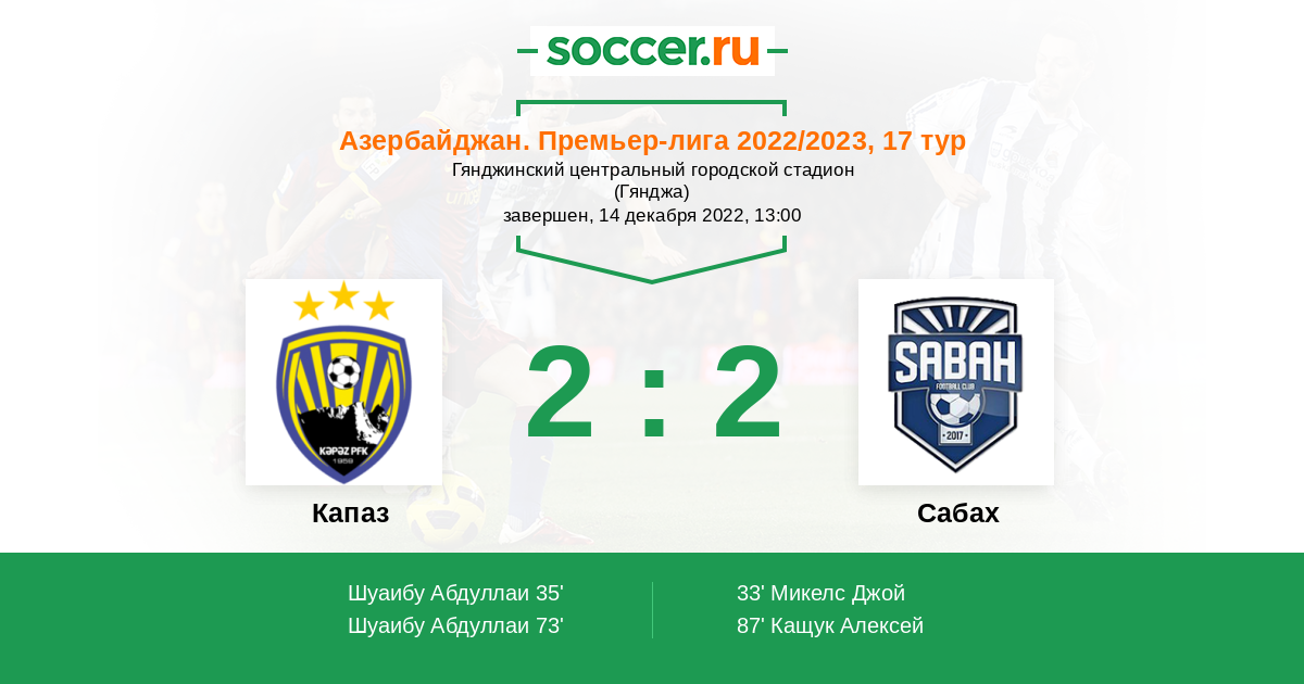35' (1:1) Шуаибу Абдуллаи (19)