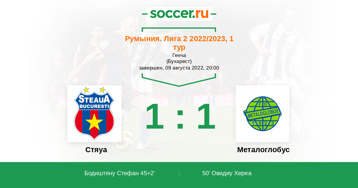 45+2' (1:0) Бодиштяну Стефан