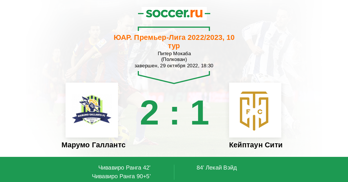 42' (1:0) Чивавиро Ранга (8) (Мдлинзо Сизве (23))