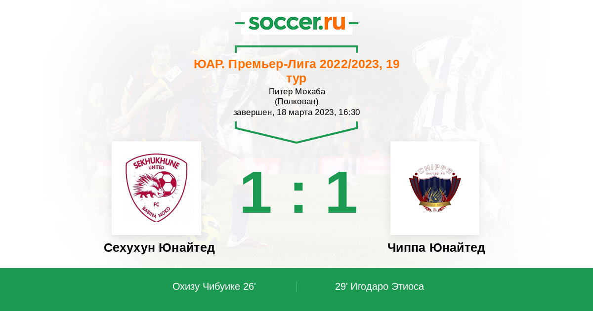 29' (1:1) Игодаро Этиоса (37) (Мафангуле Мешак (26))