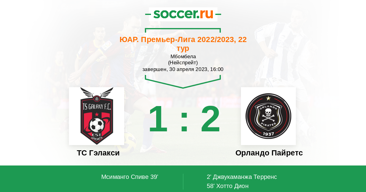 58' (1:2) Хотто Дион (7) (Сибиси Нкосинати (5))