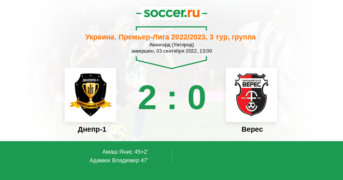 В предстоящем матче 3-го тура украинской Примьер - Лиги между командами Днепр - 1 и Верес, фаворитом на победу является команда хозяев Днепр - 1 . Думаю, что не много голов будет...