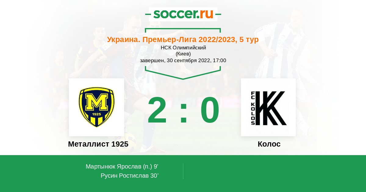 Колосу явно удался старт чемпионата, и соседство с Шахтером на первой строчке турнирной таблицы радует глаз поклонников этой команды. Металлист стартовал средненько, но не провально, и вполне способен обыграть лидера.