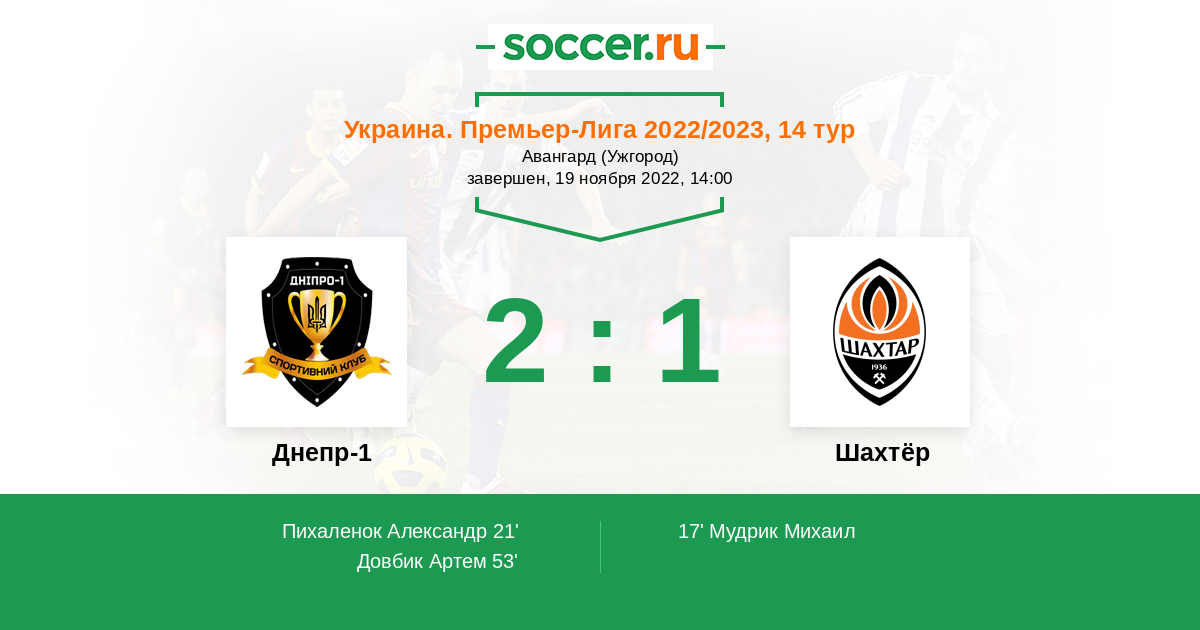 17' (0:1) Мудрик Михаил (10) (Бондаренко Артем (21))