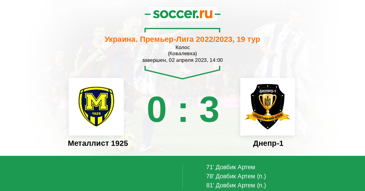 71' (0:1) Довбик Артем (7) (Пихаленок Александр (8))