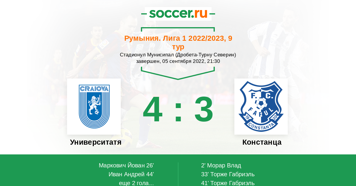 33' (1:2) Торже Габриэль (11) (Бэлуцэ Тудор (6))
