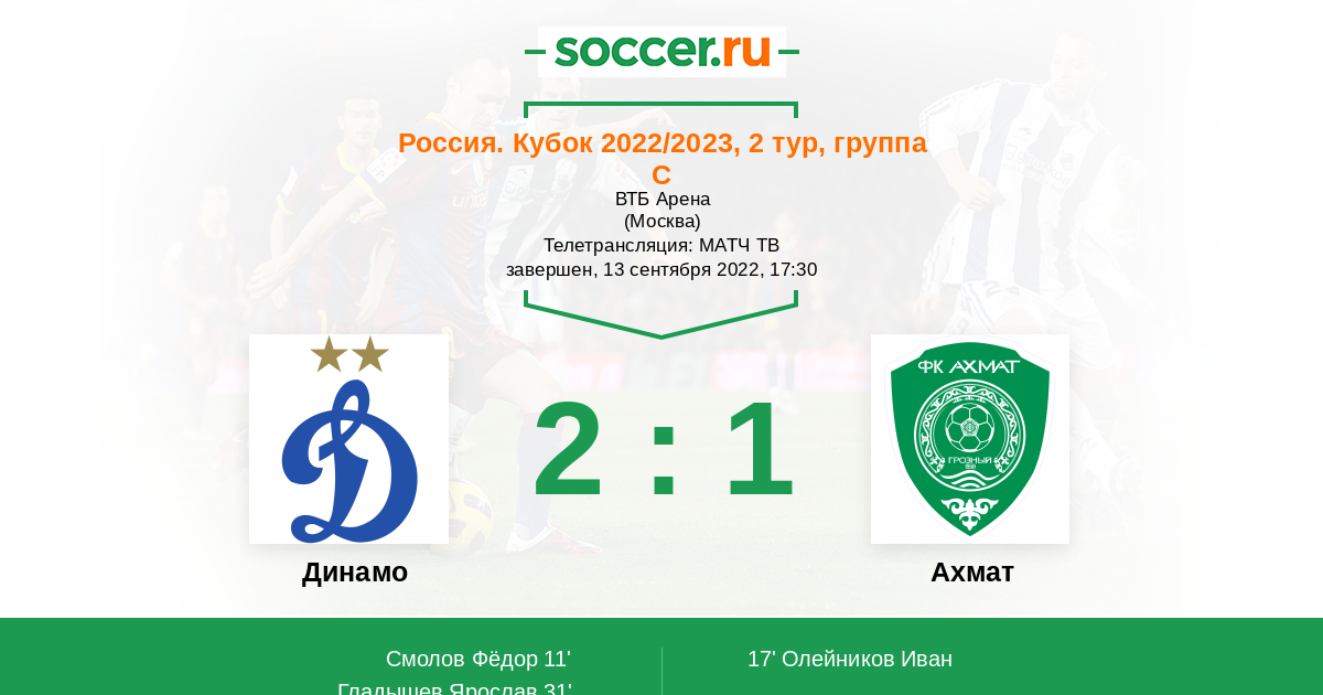 11' (1:0) Смолов Фёдор (10) (Гладышев Ярослав (91))