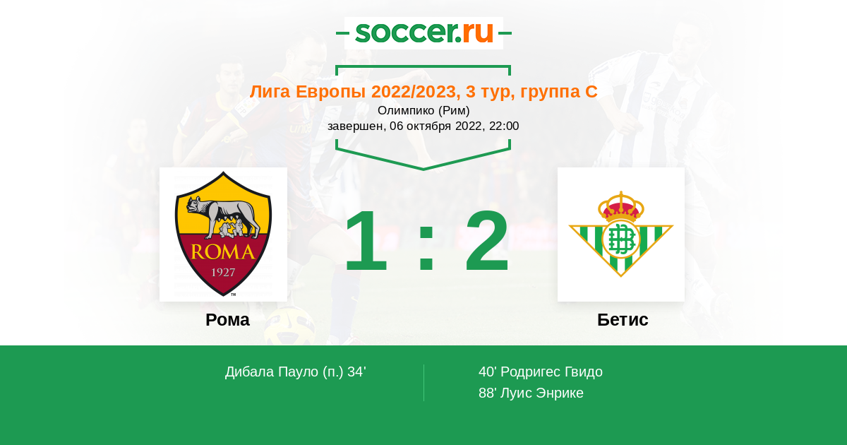 40' (1:1) Родригес Гвидо (5) (Луис Энрике (11))