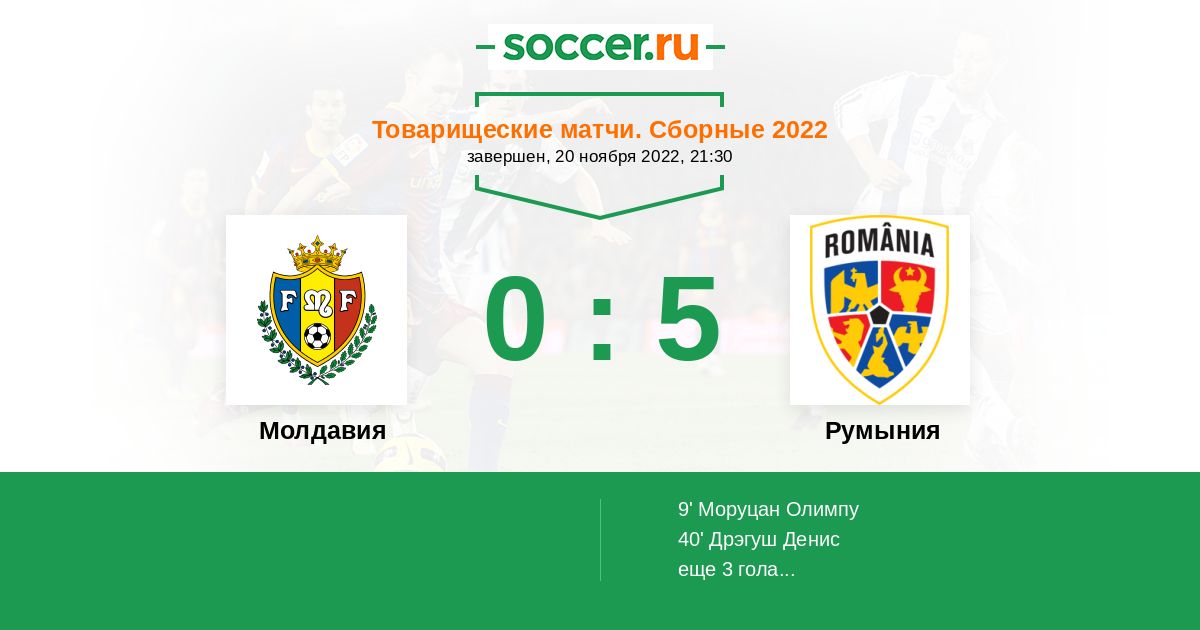 9' (0:1) Моруцан Олимпу (21) (Пушкаш Георге (9))