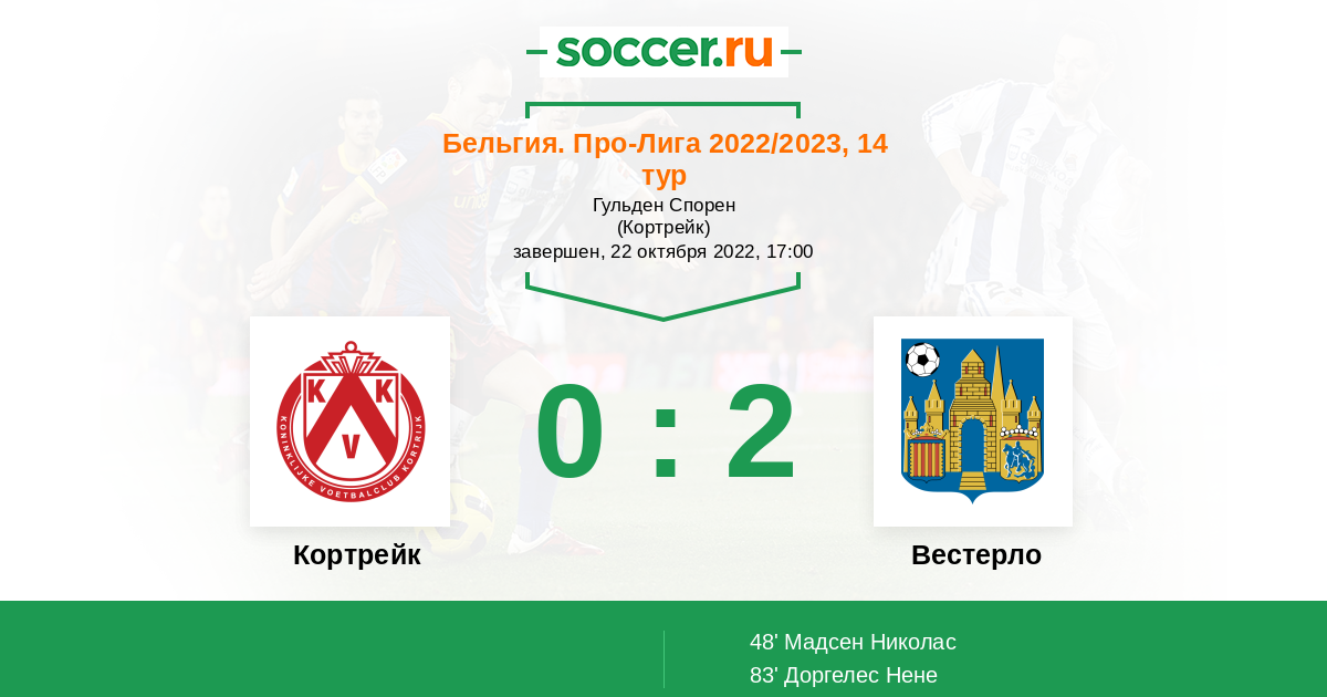 83' (0:2) Доргелес Нене (45) (Мадсен Николас (8))