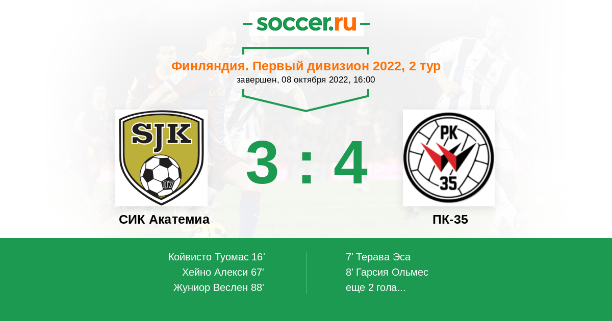 Замена62' Тиккилайнен Нутти (21) уходит с поля, Кайясилта Ноа (10) вышел на поле