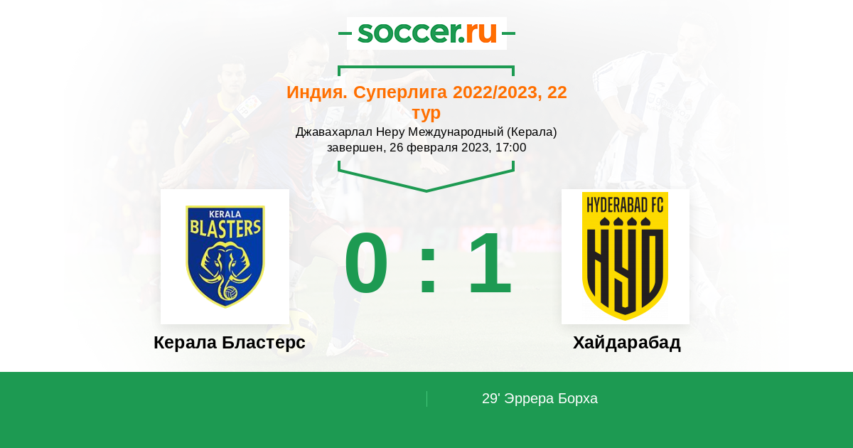 29' (0:1) Эррера Борха (26) (Нарзари Холи (19))