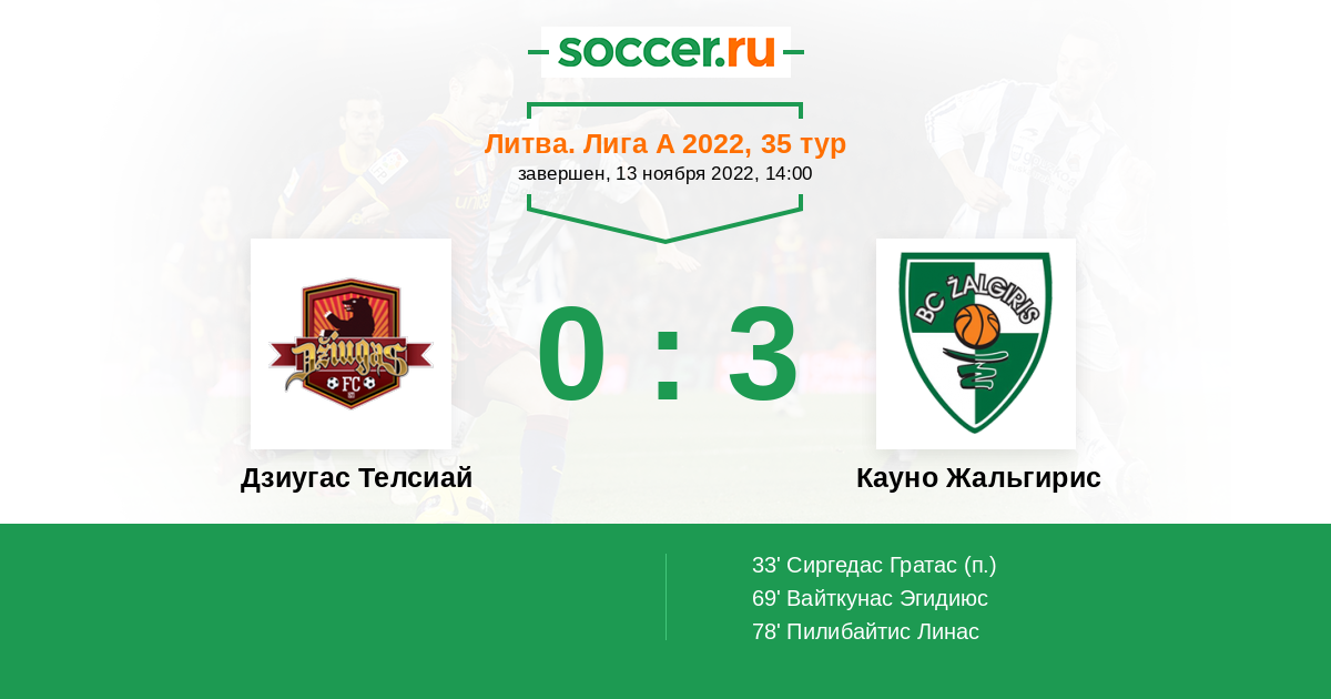 33' (0:1) Сиргедас Гратас (10)
