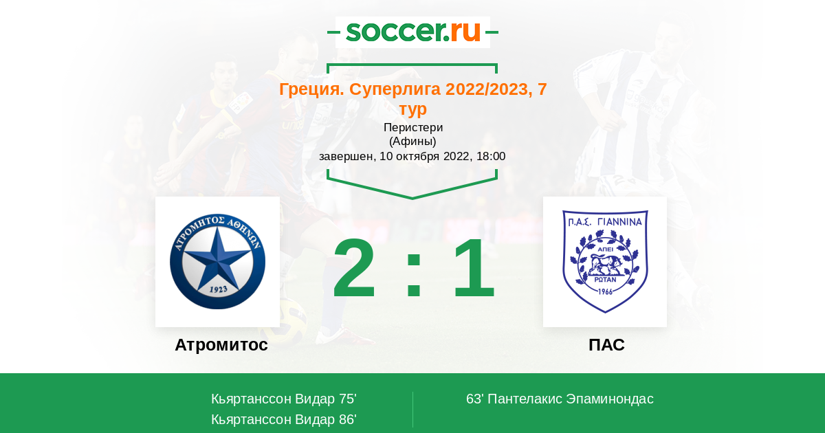Я думаю что в этом противостоянии более чем явным фаворитом на победу является команда хозяев поля Атромитос . Команда гостей ПАС в трёх матчах на выезде не выиграла ни одного матча и не забила ни одного мяча . 00