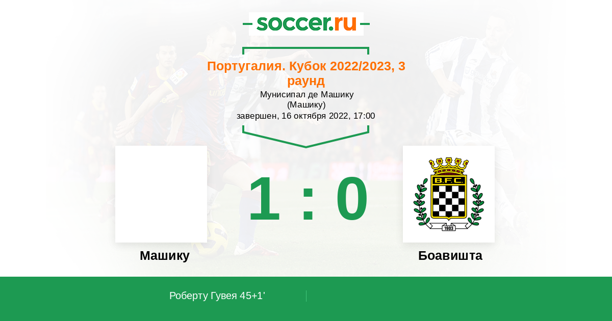 45+1' (1:0) Роберту Гувея