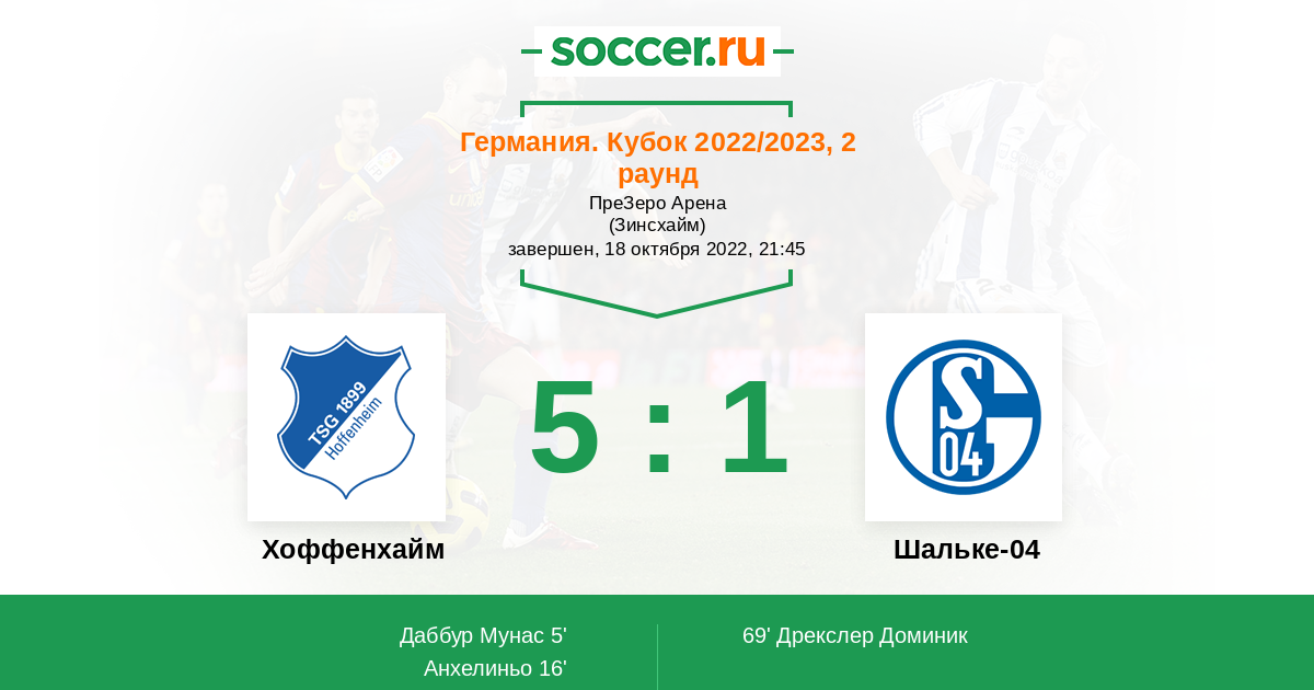 В предстоящем матче 2 - го раунда Кубка Германии 22 23 между командами Хоффенхайм и Шальке - 04 , явным фаворитом на победу является команда хозяев Хоффенхайм , так как они играют дома.