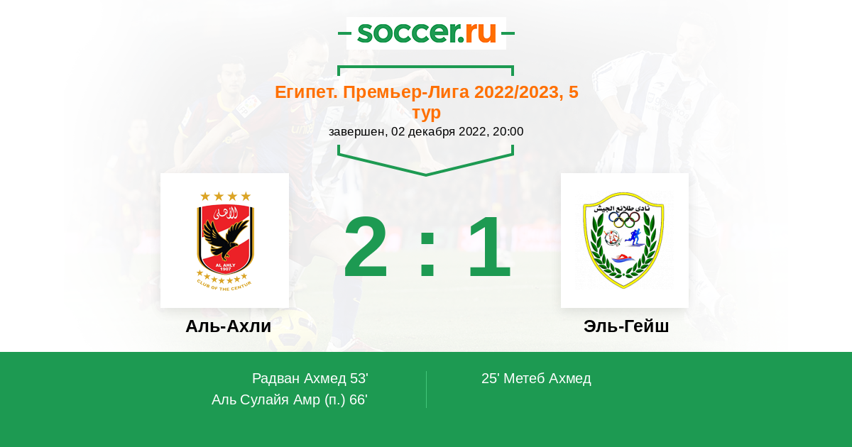 25' (0:1) Метеб Ахмед (21) (Мансур Ахмед Айман (3))