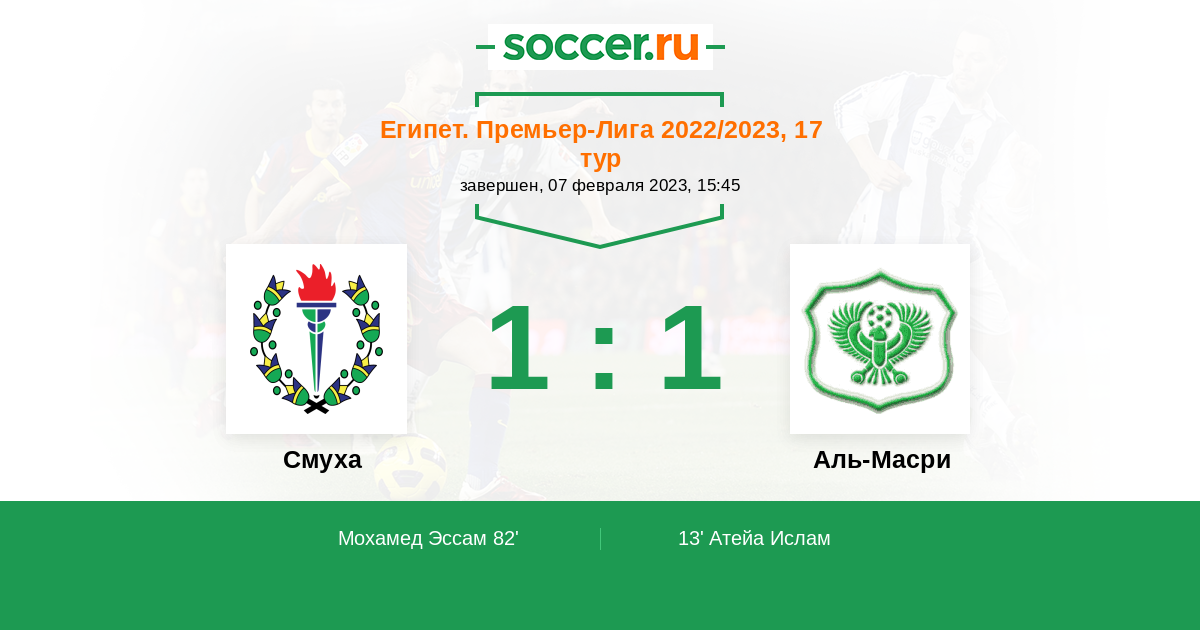 82' (1:1) Мохамед Эссам (15) (Хассан Хоссам (18))