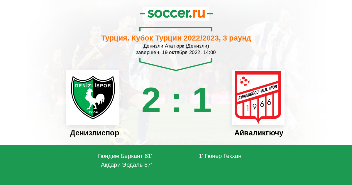 1' (0:1) Гюнер Гекхан (98)