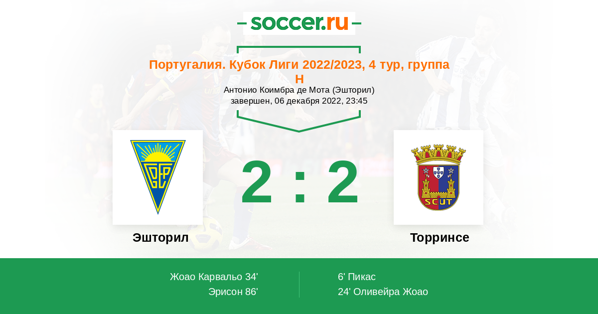 34' (1:2) Жоао Карвальо (20) (Делос Шакил (22))