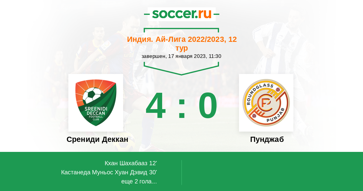12' (1:0) Кхан Шахабааз (2) (Сингх Сорайшам (5))