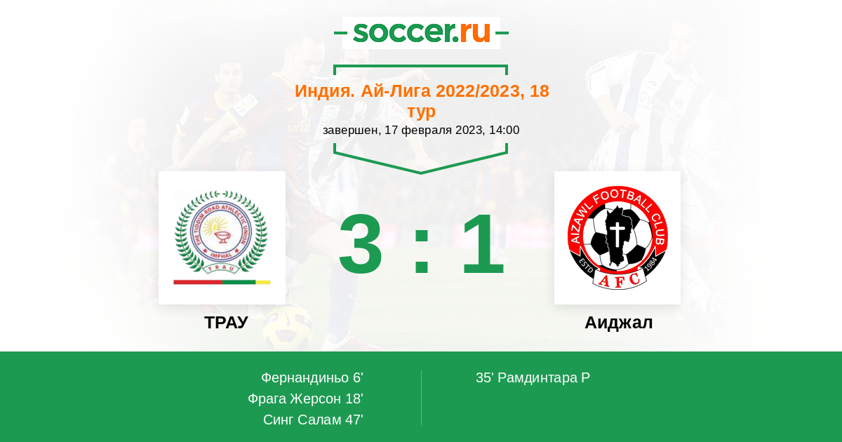 35' (2:1) Рамдинтара Р (9) (Лалхруатлуанга ХК (11))