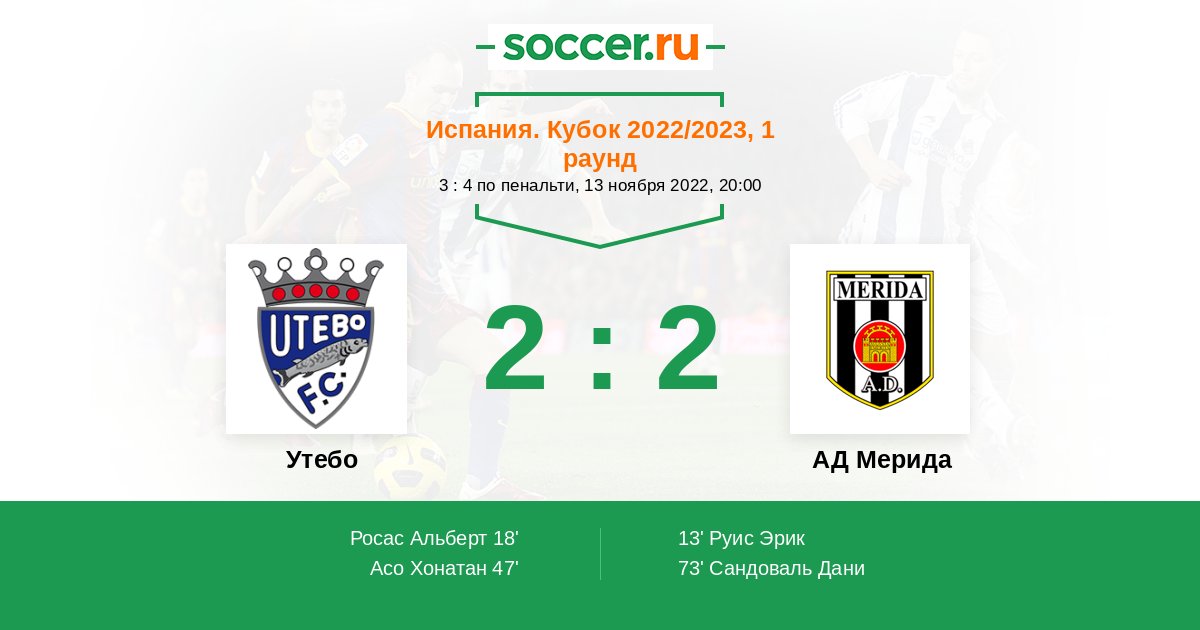 13' (0:1) Руис Эрик (5) (Рамон Альваро (20))