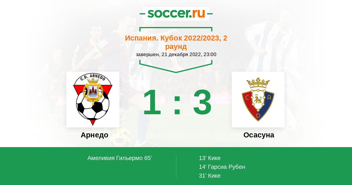 14' (0:2) Гарсиа Рубен (14) (Эрнандес Аридан (23))