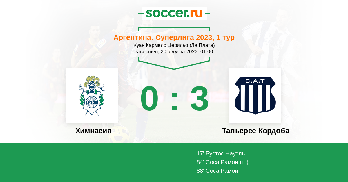17' (0:1) Бустос Науэль (10) (Соса Рамон (24))