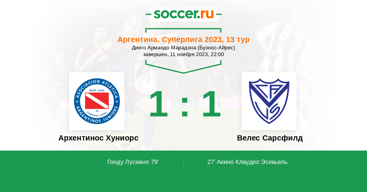 79' (1:1) Гонду Лусиано (32) (Вильялба Лукас (6))