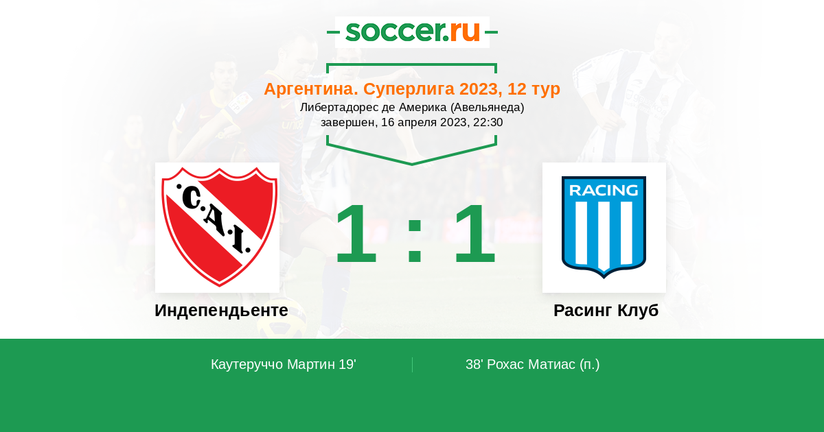 38' (1:1) Рохас Матиас (10)